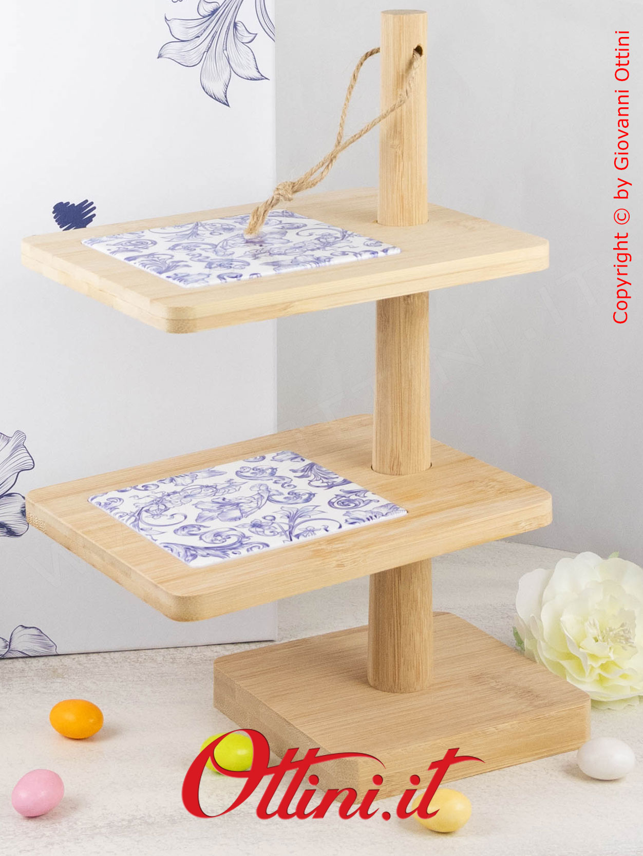 Splendida Alzata Antipastiera a 2 piani ruotanti, con superfici in maiolica con stampa fregio. I prodotti destinati alla cucina e alla tavola sono i più richiesti tra le bomboniere “utili” e le aziende come Cuorematto propongono soluzioni originali e di alta qualità, con design ricercati e raffinati. Qualsiasi accessorio di questa azienda che arriverà alla vostra tavola, sarà apprezzato con entusiasmo dai vostri commensali.