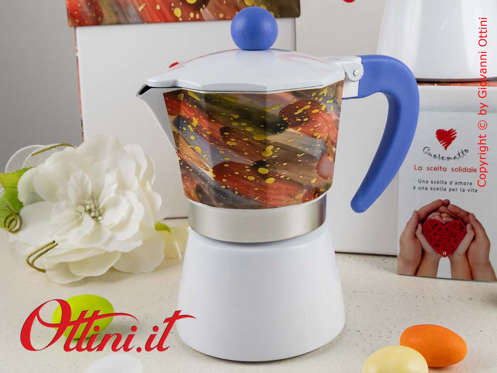 La Caffettiera Moka Cuordipinto di Cuorematto è abbinata al progetto di solidarietà CUOREMATTO che sosterrà concretamente le opere dei Frati dell’Antoniano di Bologna ed è corredata del relativo certificato che ne garantisce l’originalità.