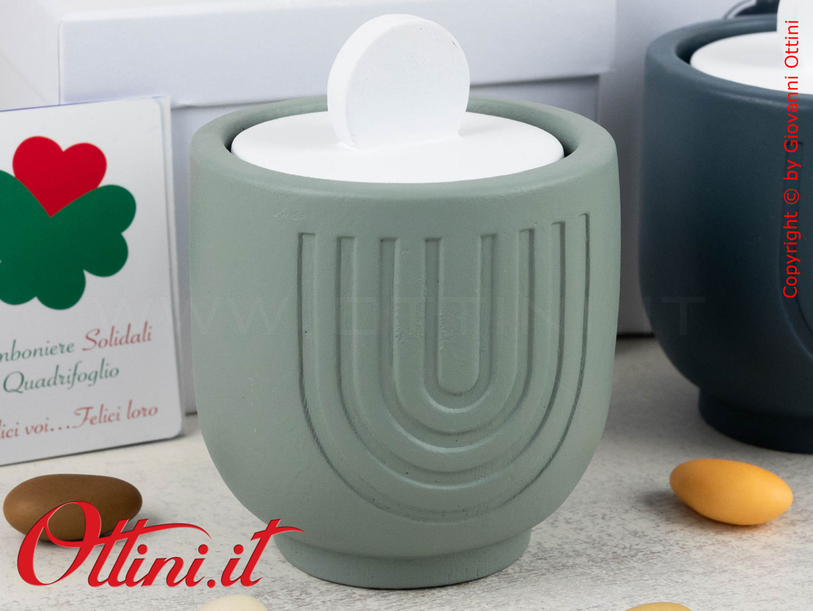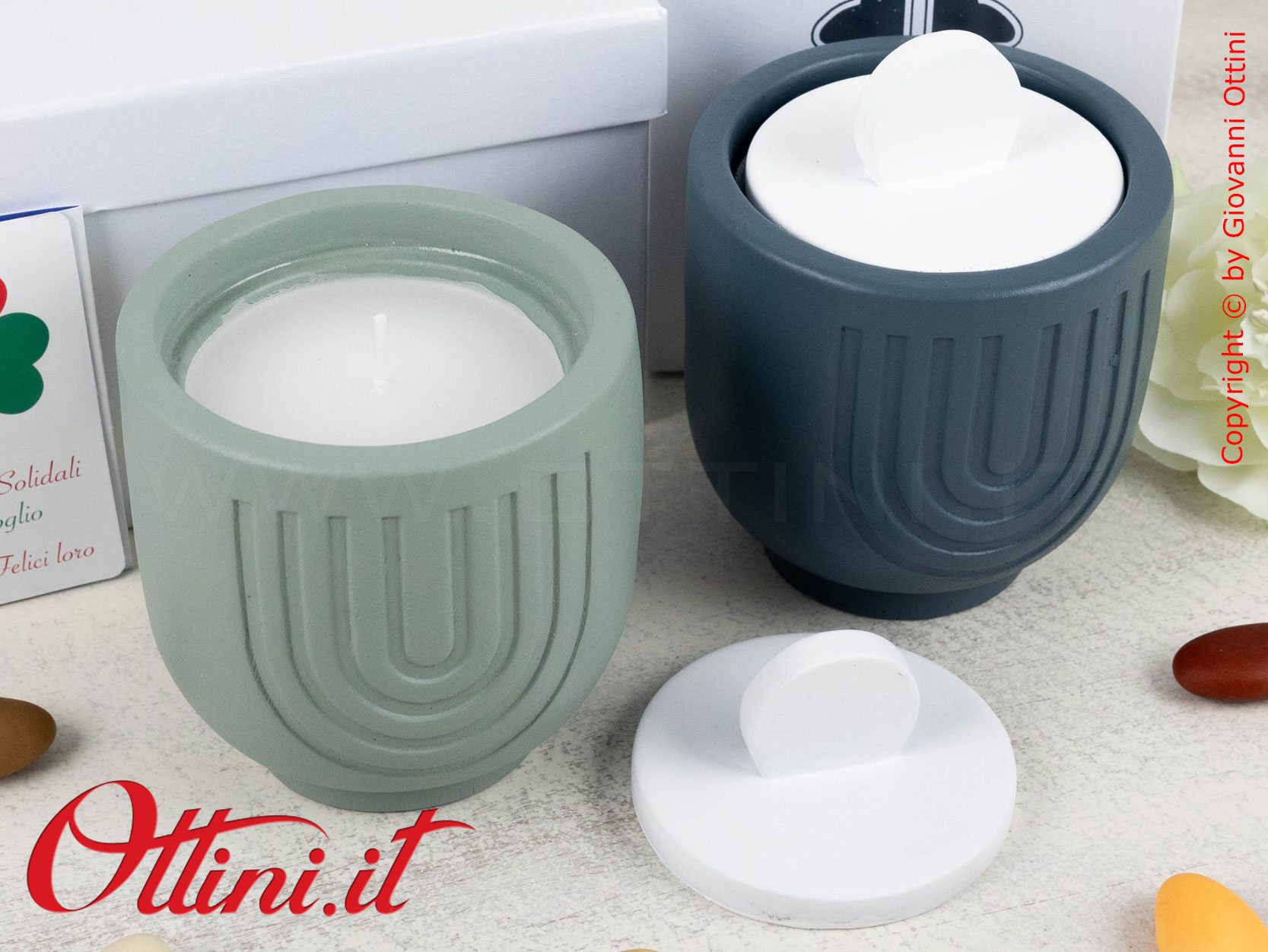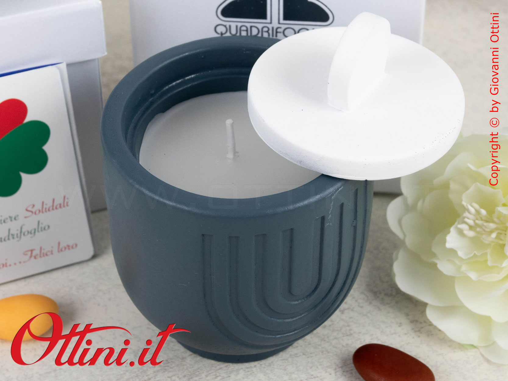 La luce di una candela per creare quell’atmosfera di intimità e serenità con le persone che amiamo. Quadrifoglio ha realizzato questa bellissima candela della collezione “Eterno”, una serie dal design in terracotta e colori di tendenza. Viene venduto in due tonalità assortite: una verde salvia e una blu ottanio (quelle che vedete nelle foto). Se ne acquistate solo una, riceverete un colore a caso, se ne acquistate 2 riceverete un colore per tipo, e così via in modo assortito per quantitativi maggiori.