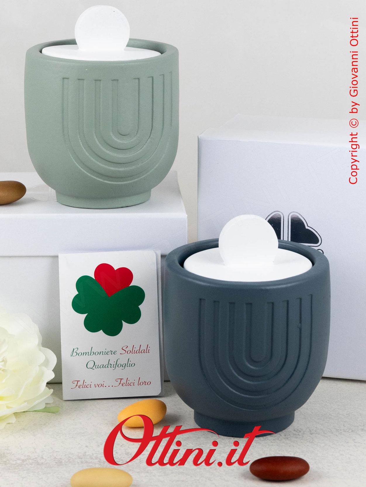 Questa Bomboniera è abbinata al progetto di solidarietà QUADRIFOGLIO che sostiene la Fondazione ABIO Italia Onlus, concretamente impegnata al fianco dei bambini in ospedale. Ogni bomboniera è corredata del relativo certificato che ne garantisce l’originalità.