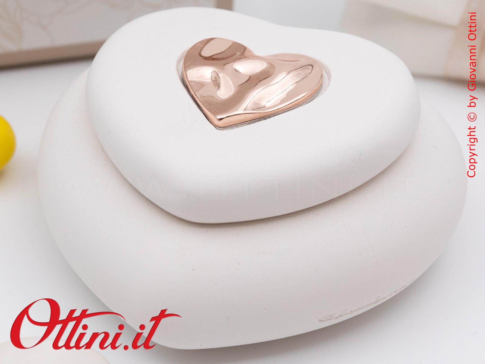 Claraluna ci presenta questa elegante Candela a forma di cuore con un decoro, sempre a forma di cuore, nel colore oro rosa. È un oggetto semplice, realizzata in gesso, una volta esaurita la candela, può essere sostituita con i classici moccoli o utilizzata anche come svuota tasche o porta caramelle… ovunque la metterete sarà un prestigioso complemento d’arredo o un posto speciale dove riporre con cura i vostri piccoli oggetti.