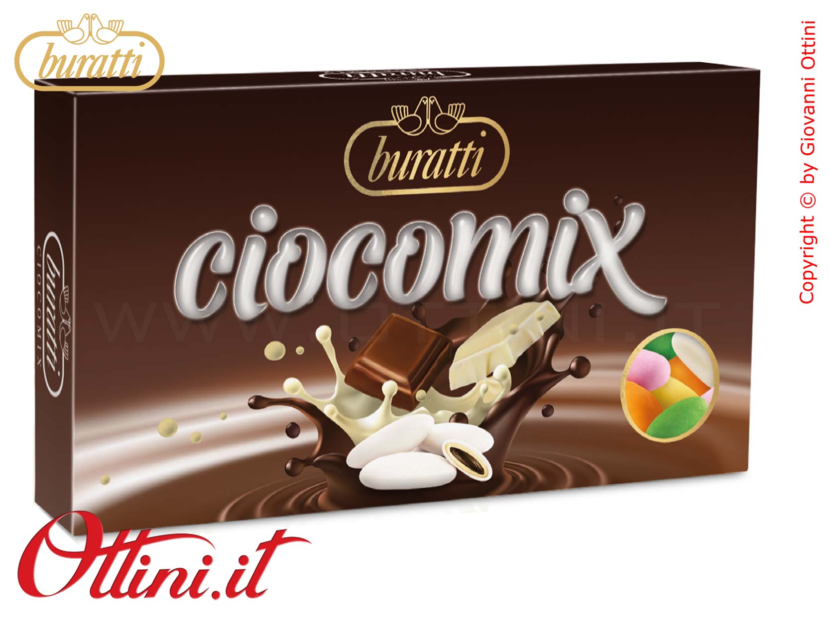 Tenerissimi Confetti Buratti al cioccolato della linea Ciocomix colori misti Multicolor, indicati per compleanni, feste e per decorare, composti da un nucleo di gustoso cioccolato al latte rivestito da uno strato di cioccolato bianco. Sono l’evoluzione del classico confetto al cioccolato fondente che si faceva (e si fa ancora!) decenni fa, indiscutibilmente più dolce e più morbido.