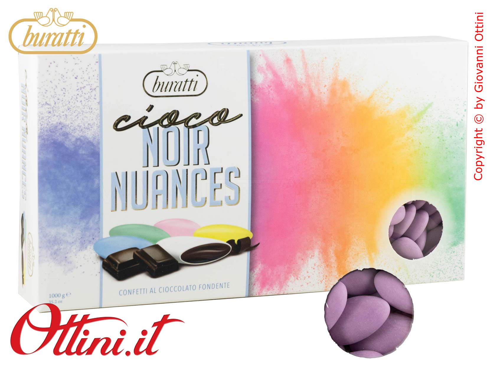 Buonissimi Confetti Buratti color lilla satinato al cioccolato fondente. La tipologia del confetto è una delle più antiche del settore, quindi si presentano leggermente più tenaci al morso iniziale (sono tutti così quelli al solo cioccolato fondente). La finitura della glassa di zucchero esterna è stata notevolmente migliorata: senza cera carnauba si presentano con un colore satinato a pastello strepitoso, veramente bellissimi!!! Ideali per la confezione di sacchettini bomboniera o per allestimenti confettate laddove necessitano colori particolari senza spendere grandi importi.