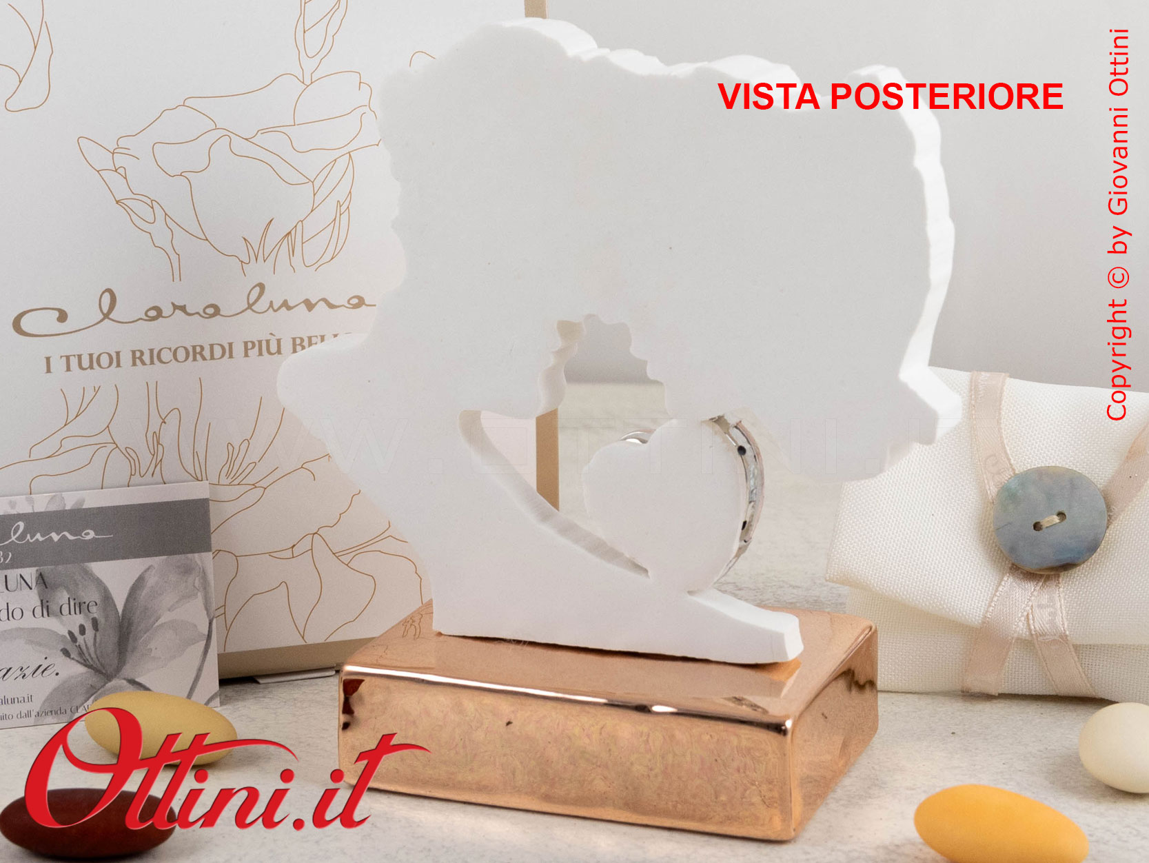 Con un ordinativo minimo di 50 pz della Coppia Innamorati Base Oro Rosa (o di bomboniere miste Claraluna abbinate alla promozione), potrete accedere alla campagna promozionale che vi permette di avere le PARTECIPAZIONI di Claraluna IN OMAGGIO, comprensive di servizio stampa!!! Potrete scegliere tra ben 6 modelli bellissimi! Per le condizioni e le modalità FATE CLICK QUI.