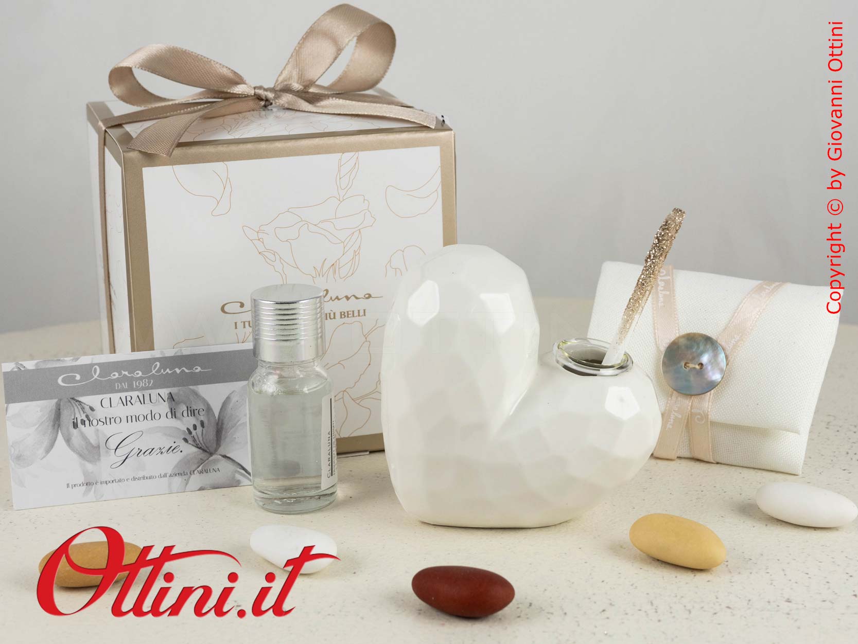 Per un ordinativo minimo di 50 bomboniere Diffusore Cuore Bianco, potrete accedere alla campagna promozionale che vi permette di avere le PARTECIPAZIONI di Claraluna IN OMAGGIO, comprensive di servizio stampa!!! Potrete scegliere tra ben 6 modelli bellissimi! Per le condizioni e le modalità FATE CLICK QUI.