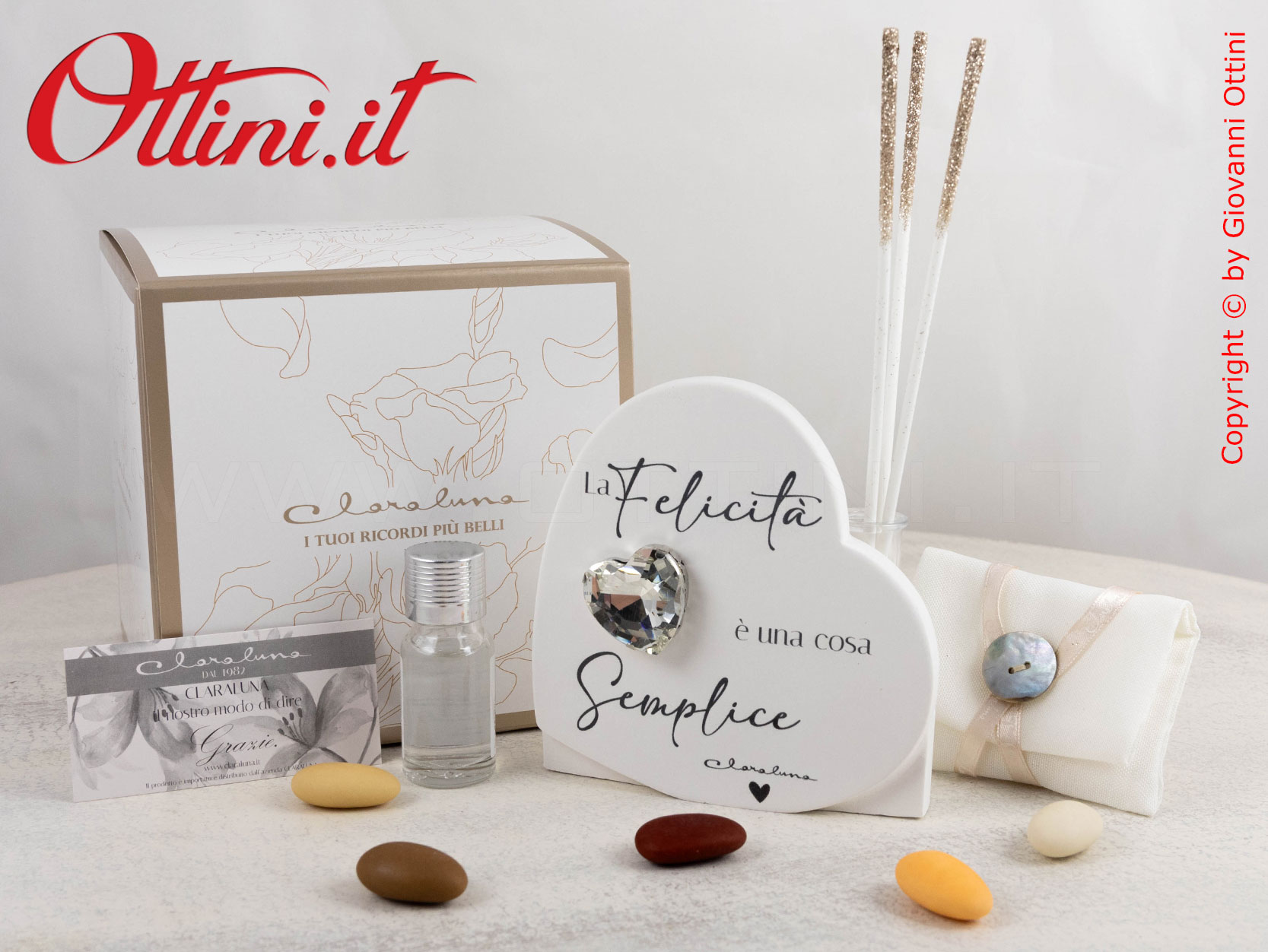 Con un ordinativo minimo di 50 pz del Diffusore Cuore Silver (o di bomboniere miste Claraluna abbinate alla promozione), potrete accedere alla campagna promozionale che vi permette di avere le PARTECIPAZIONI di Claraluna IN OMAGGIO, comprensive di servizio stampa!!! Potrete scegliere tra ben 6 modelli bellissimi! Per le condizioni e le modalità FATE CLICK QUI.