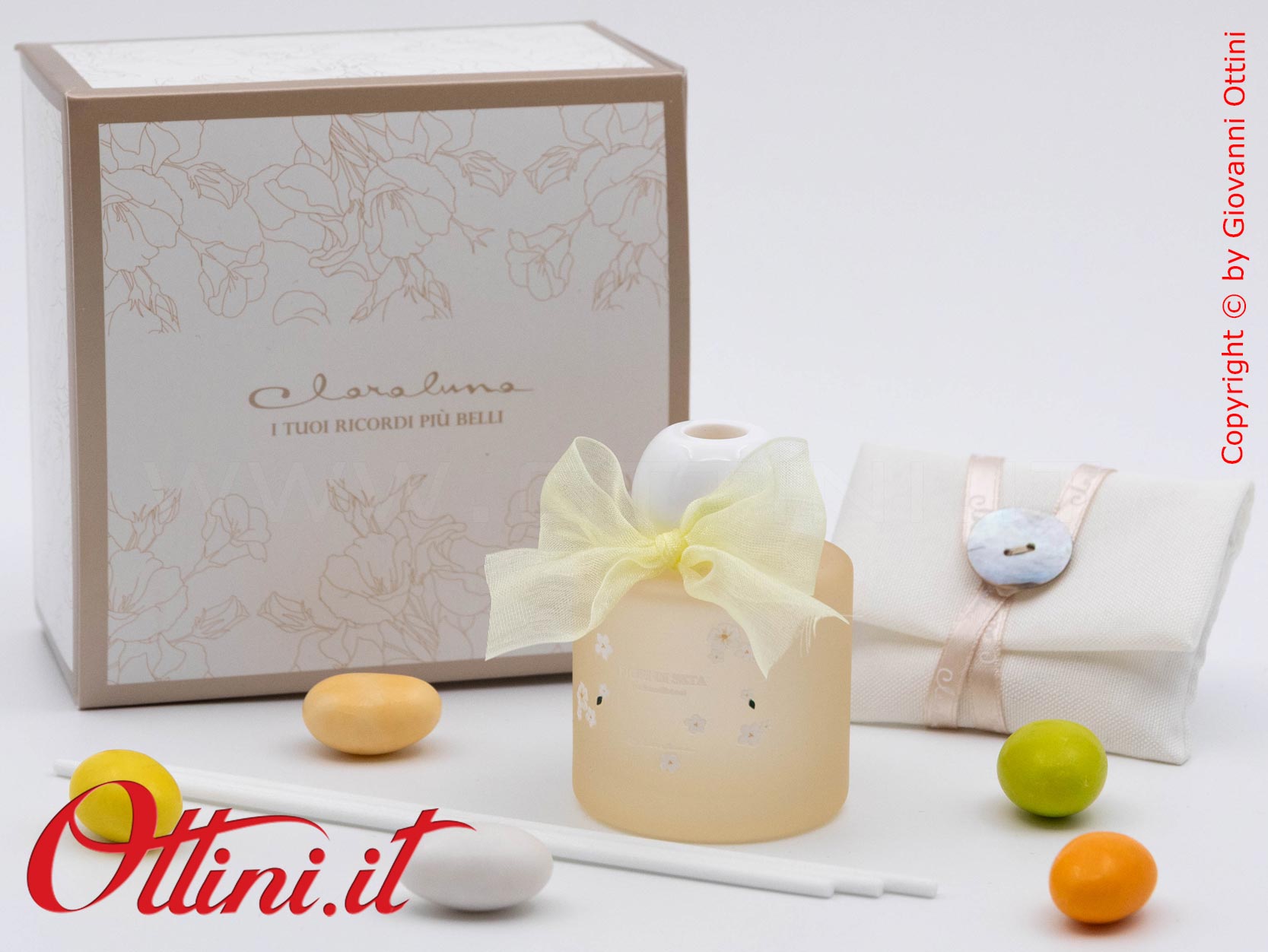 ATTENZIONE: imballiamo con estrema cura le bomboniere come il Diffusore Profumatore Giallo Fiori 50ml – 26244 Claraluna. Tuttavia è possibile che durante il trasporto, il corriere possa danneggiarle per una infinita serie di ragioni. State tranquilli perché la merce viaggia assicurata e in caso di danno siamo qui per sostituire gratuitamente le rotture, ma dovete solo seguire una sola regola: al ricevimento, prestare attenzione all’incolumità del collo e opponete sempre “RISERVA DI CONTROLLO”, specificando eventualmente il danno (rumore di rottura, cartone schiacciato, ammaccato, ecc). L’autista è OBBLIGATO ad accettare la riserva. Se non opponete la Riserva, e dovessero risultare rotte, diventa problematico far valere l’assicurazione e procedere con la sostituzione.