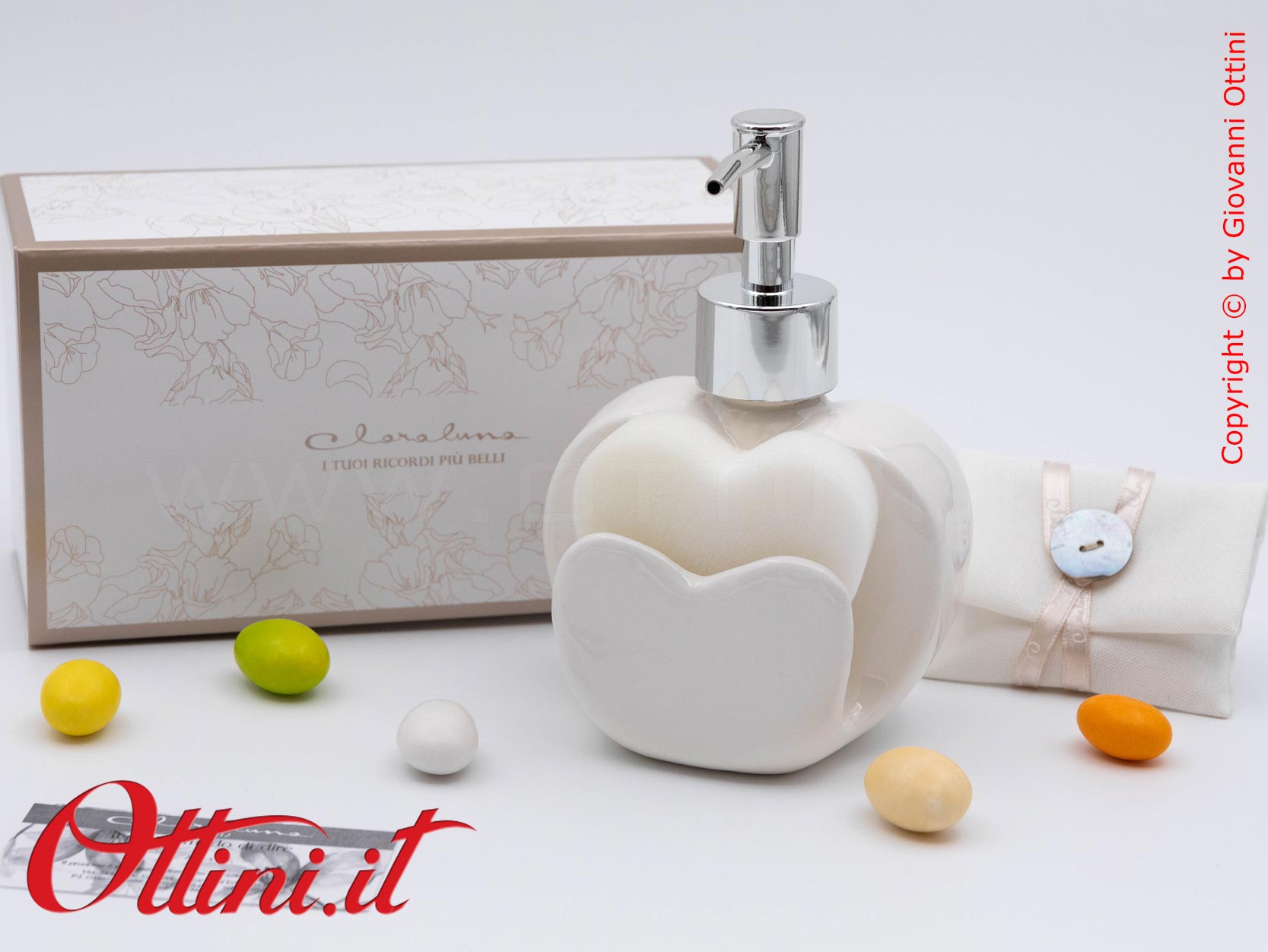 La bomboniera utile è di fatto la richiesta della maggior parte dei nostri clienti, che sia per la cucina, per gli altri altri ambienti della casa, le proposte sono tantissime. Claraluna con questo dispenser bianco di sapone liquido con spugna coordinata, ha puntato a dare un colpo di classe anche nel luogo più frequentato di casa: il bagno. Realizzato in ceramica bianca smaltata è un prodotto dal design innovativo. Le dimensioni sono ottimali ed è disponibile in diversi colori che trovate sul nostro sito.