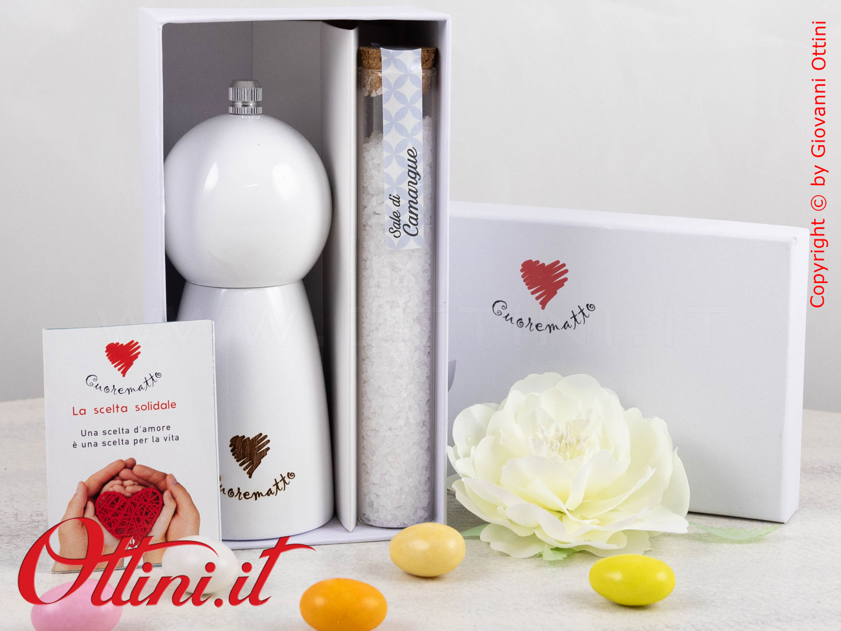 Il Macinasale in Legno Bianco di Cuorematto è abbinato al progetto di solidarietà CUOREMATTO che sosterrà concretamente le opere dei Frati dell’Antoniano di Bologna ed è corredata del relativo certificato che ne garantisce l’originalità.