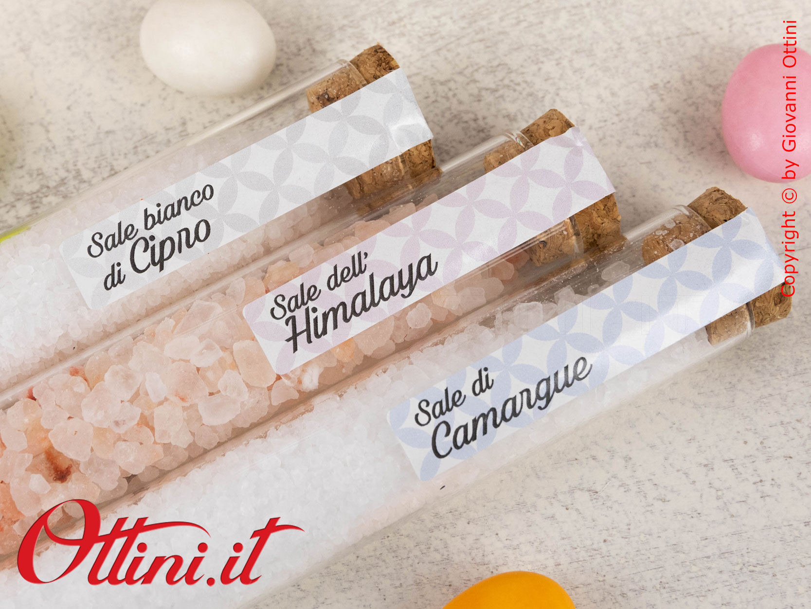 Con ogni prodotto è compresa una sola fialetta con un sale speciale fornito in modo assortito tra le tre seguenti degustazioni: Sale di Cipro, Sale dell’Himalaya, Sale di Camargue.