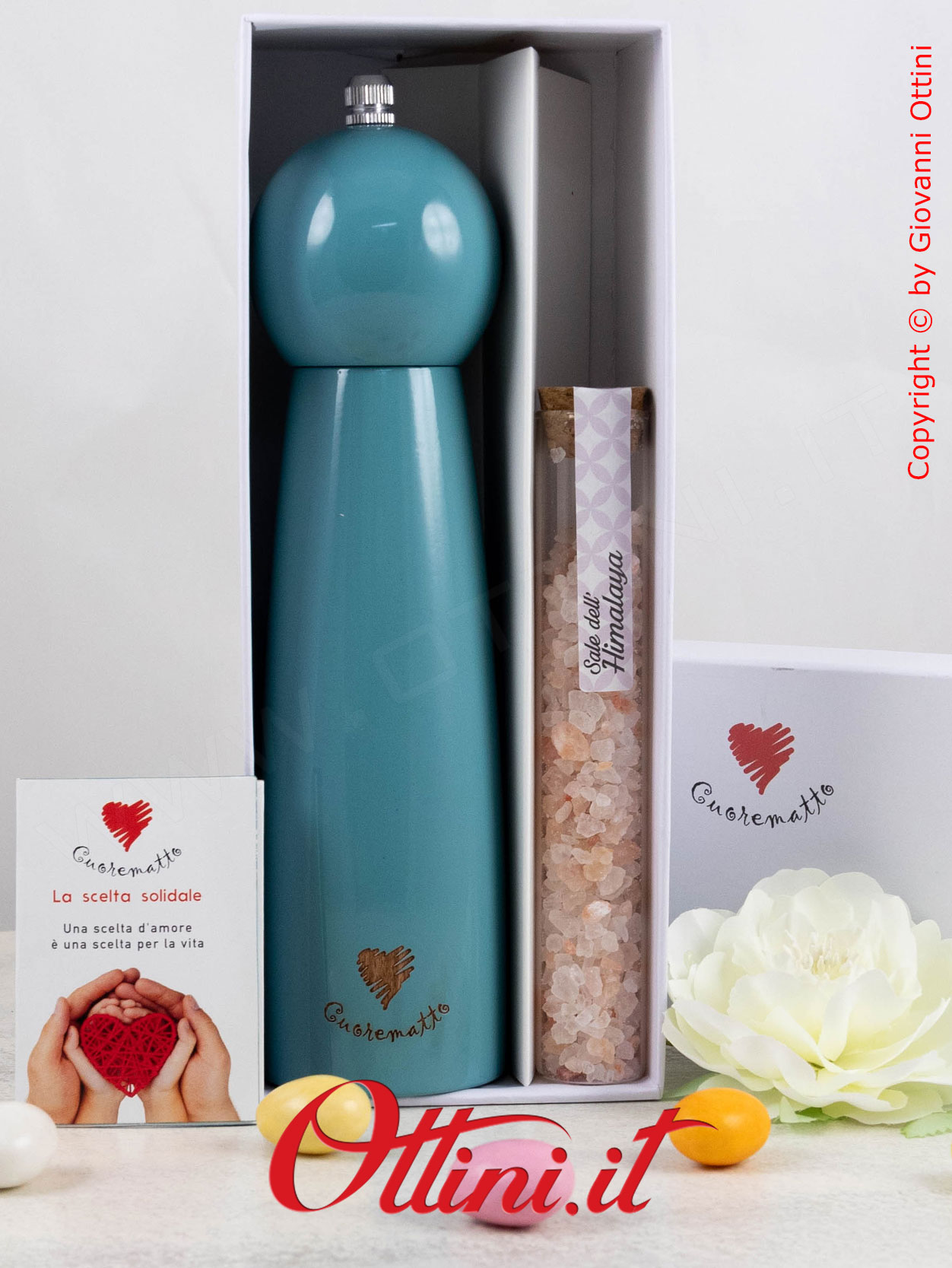 Il Macinasale in Legno Grigio di Cuorematto è abbinato al progetto di solidarietà CUOREMATTO che sosterrà concretamente le opere dei Frati dell’Antoniano di Bologna ed è corredata del relativo certificato che ne garantisce l’originalità.