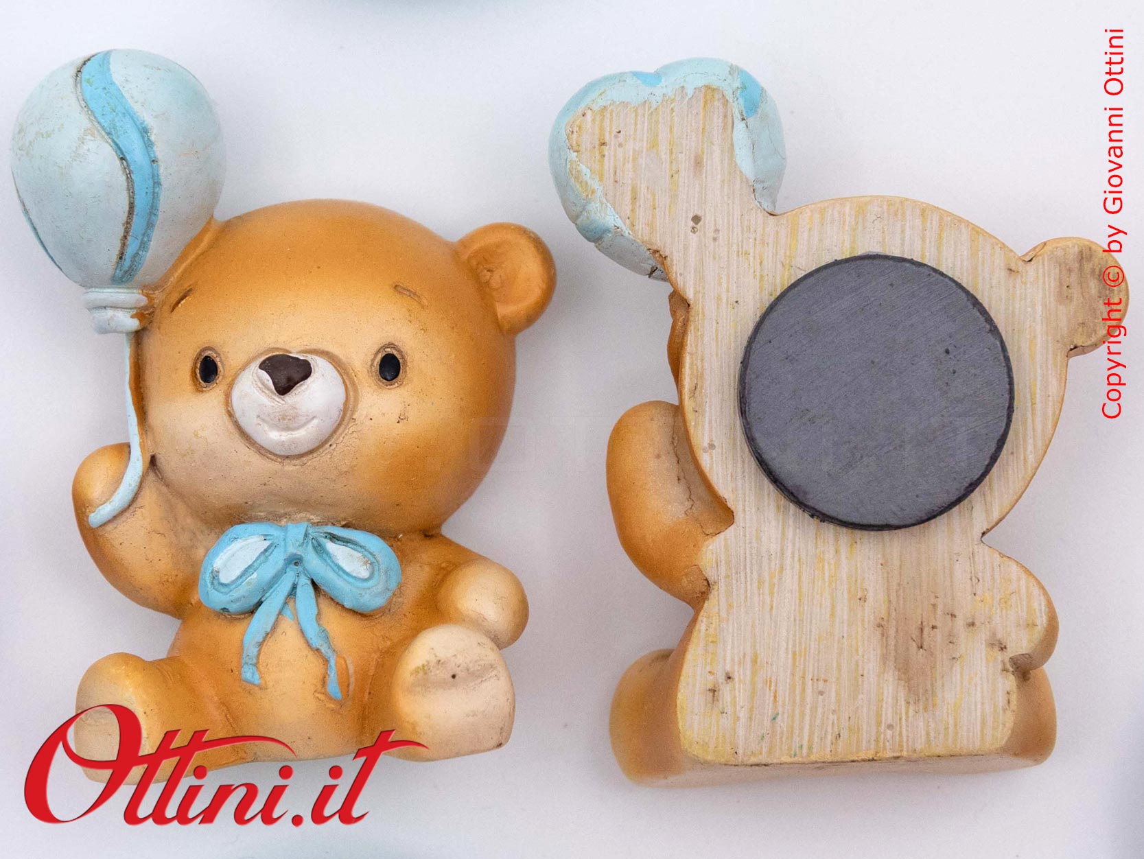 Design vintage e tenerezza senza fine per questo magnete orsetto con fiocchetto cielo e il suo palloncino, simbolo di leggerezza e innocenza. Adatto alla decorazione di sacchettini, barattoli e qualsiasi prodotto per festeggiare una nascita o un battesimo. Realizzato in resina finemente decorata, è disponibile in due varianti e viene venduto in modo assortito (ogni 2 acquistati ne riceverete uno per tipo). Il prezzo è di un solo magnete. Si possono applicare a qualsiasi supporto anche con una punta di colla a caldo.