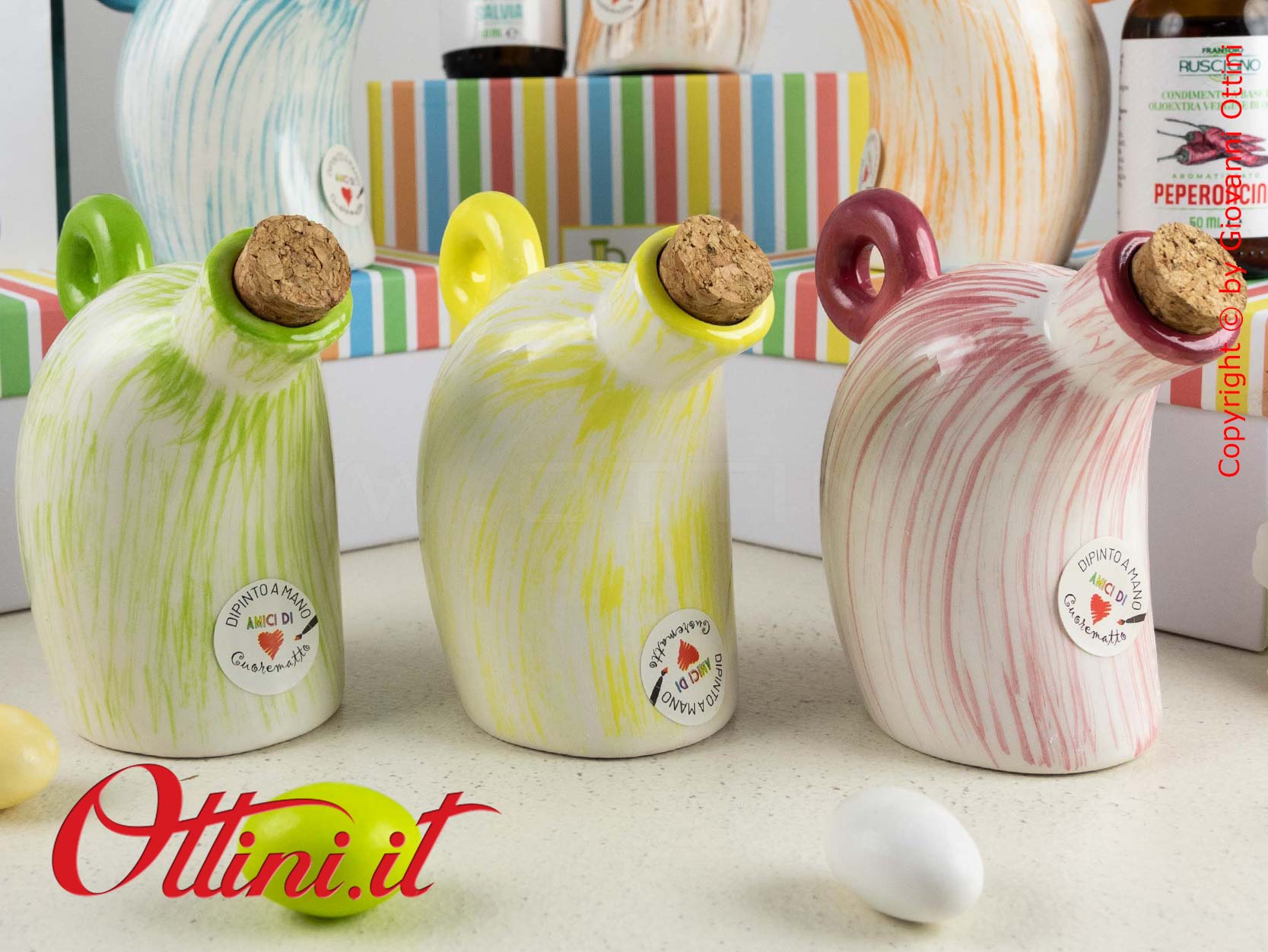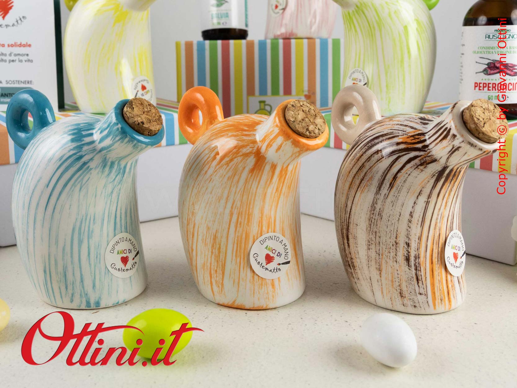 Colori brillanti da portare in tavola con gli amici, perchè dove c’è allegria, c’è calore e COLORE! L’Oliera Dolphin piccola con con Olio EVO di Amici di Cuorematto è realizzato in ceramica bianca dipinta a mano e smaltata con finitura lucida e tappo in sughero. Con questo codice (DA230) viene fornita in 6 varianti colore assortite come in foto (se ne acquistate uno ne riceverete una a caso, se ne acquistate due ne riceverete due a caso ma diverse tra loro… se ne acquistate 6 ne riceverete una per tipo).