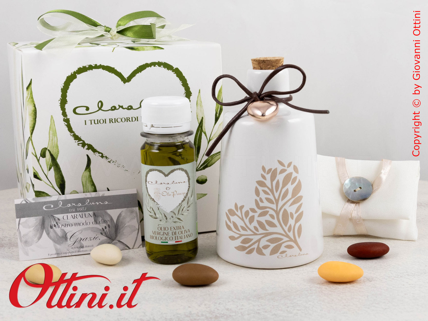 Con un ordinativo minimo di 50 pz dell’Oliera Grande Decoro Cuore con Olio (o di bomboniere miste Claraluna abbinate alla promozione), potrete accedere alla campagna promozionale che vi permette di avere le PARTECIPAZIONI di Claraluna IN OMAGGIO, comprensive di servizio stampa!!! Potrete scegliere tra ben 6 modelli bellissimi! Per le condizioni e le modalità FATE CLICK QUI.