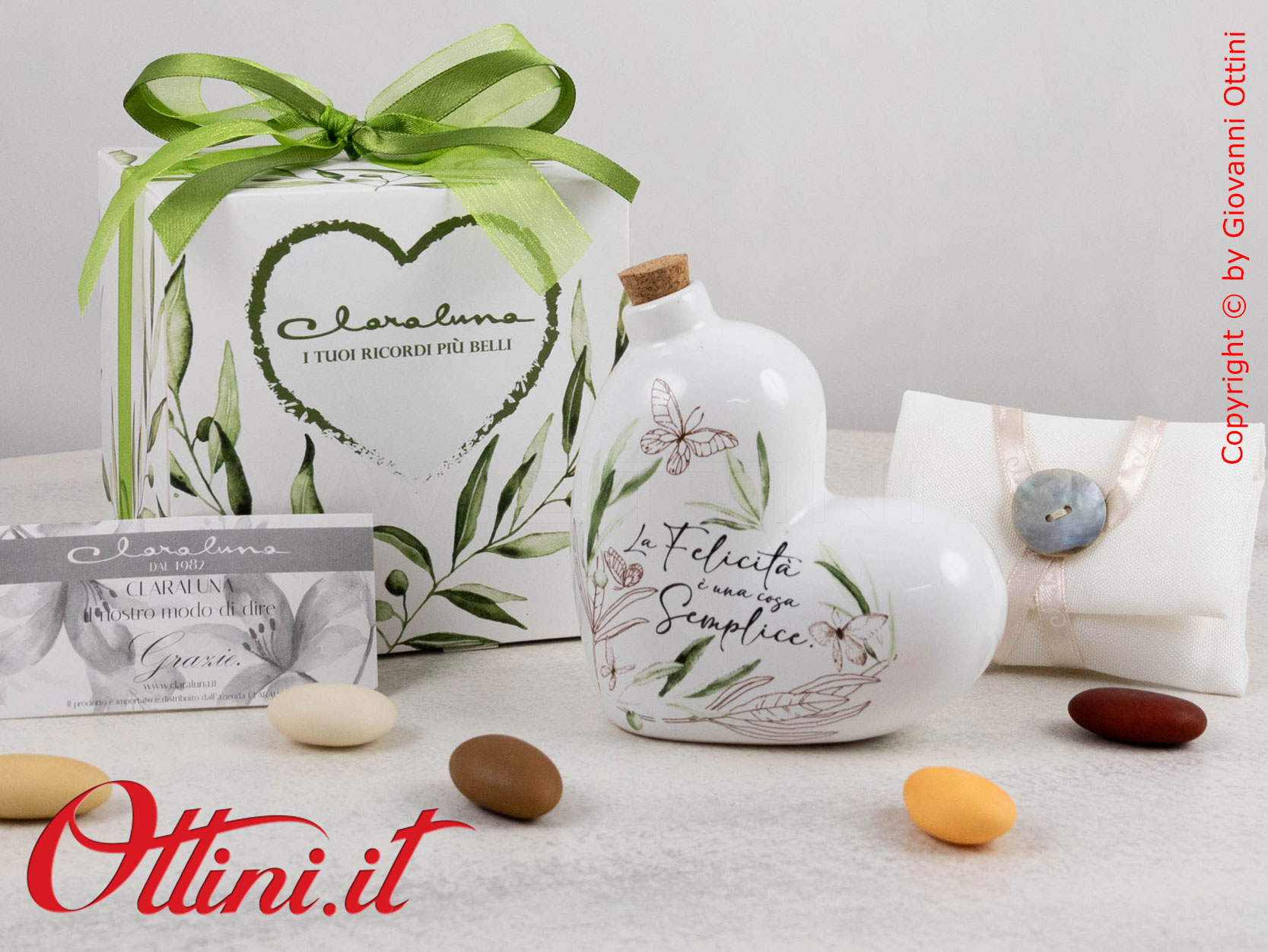 Con un ordinativo minimo di 50 pz dell’Oliera Piccola Cuore (o di bomboniere miste Claraluna abbinate alla promozione), potrete accedere alla campagna promozionale che vi permette di avere le PARTECIPAZIONI di Claraluna IN OMAGGIO, comprensive di servizio stampa!!! Potrete scegliere tra ben 6 modelli bellissimi! Per le condizioni e le modalità FATE CLICK QUI.
