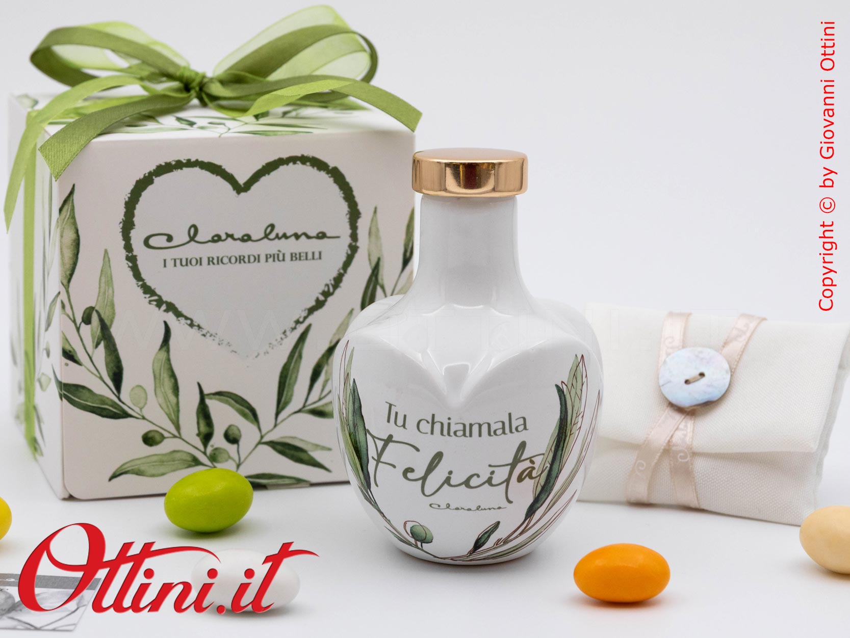 – la sua elegante Scatola Ulivo o Scatola BOTANICA o Fiocco o Shopper Led, tutte originali Claraluna: (clicca per vederle) (SOLO vederle, non dovete acquistarle o metterle nel carrello perchè sono gratuite e ve lo chiederemo noi una volta concluso l’ordine).