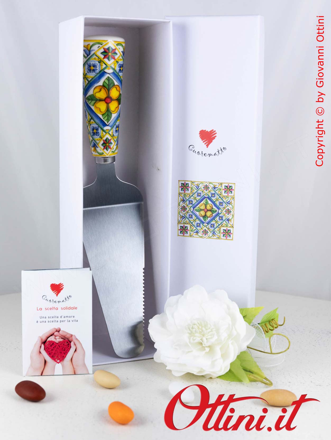 La Palatorta Mediterraneo Cuorematto è una bomboniera solidale utile e dai bellissimi colori solari. Le maioliche, tipiche dello stile mediterraneo, sono un tema di particolare tendenza, molto richiesto soprattutto nei matrimoni. Gli oggetti che possono essere riutilizzati in cucina sono diventanti i più apprezzati e richiesti rispetto a quelli di arredo.