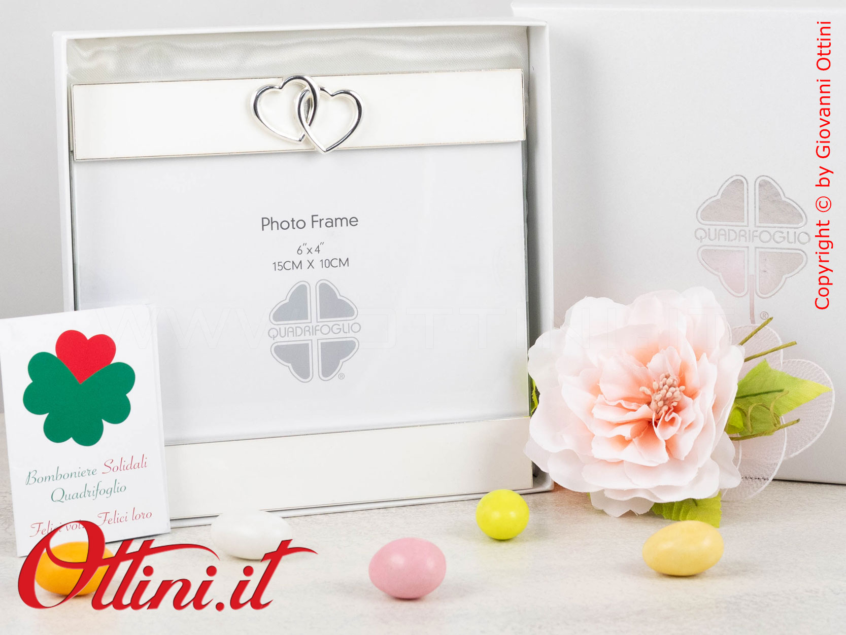 ATTENZIONE: Imballiamo le bomboniere come il Portafoto Due Cuori di Quadrifoglio con estrema cura. Tuttavia è possibile che durante il trasporto, il corriere possa danneggiarle per una infinita serie di ragioni. State tranquilli perché la merce viaggia assicurata e in caso di danno siamo qui per sostituire gratuitamente le rotture, ma dovete solo seguire una sola regola: al ricevimento, prestare attenzione all’incolumità del collo e opponete sempre “RISERVA DI CONTROLLO”, specificando eventualmente il danno (rumore di rottura, cartone schiacciato, ammaccato, ecc). L’autista è OBBLIGATO ad accettare la riserva. Se non opponete la Riserva, e dovessero risultare rotte, diventa problematico far valere l’assicurazione e procedere con la sostituzione.
