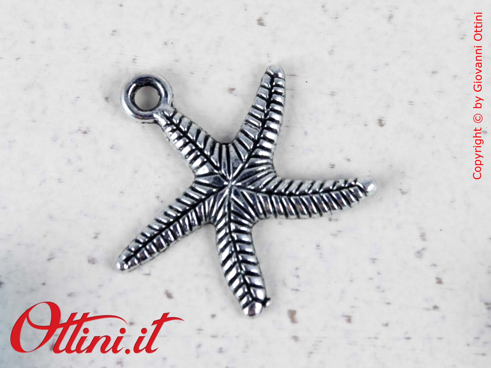 Stupendo Pendente Ciondolo Stella Marina, realizzato in materiale plastico molto resistente e leggero con finitura metallizzata. E’ un oggettino decorativo adatto a qualsiasi esigenza, anche ad essere indossato. Non si ossida e non cambia il colore. Ideale per chi desidera personalizzare le proprie bomboniere e sacchettini con un tema mare ad un prezzo molto contenuto.