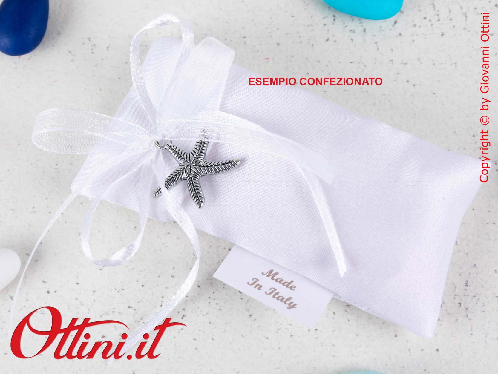 Nell’esempio che vedete nell’ultima fotografia, abbiamo abbinato il Pendente Ciondolo Stella Marina al sacchettino portaconfetti che trovate in questa categoria ma sono fantastici anche per valorizzare i barattolini di vetro con il tappo in sughero o da unire ai nastri quando confezionate le bomboniere.