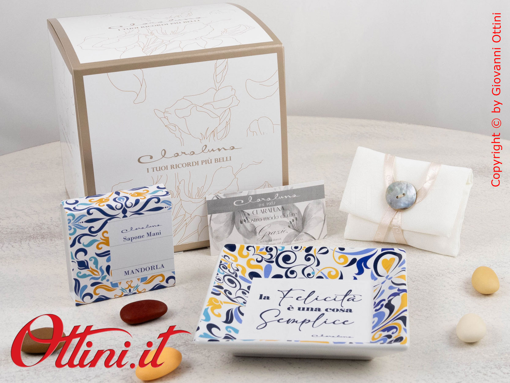Con un ordinativo minimo di 50 pz del Piattino Maiolica con Sapone alla Mandorla (o di bomboniere miste Claraluna abbinate alla promozione), potrete accedere alla campagna promozionale che vi permette di avere le PARTECIPAZIONI di Claraluna IN OMAGGIO, comprensive di servizio stampa!!! Potrete scegliere tra ben 6 modelli bellissimi! Per le condizioni e le modalità FATE CLICK QUI.
