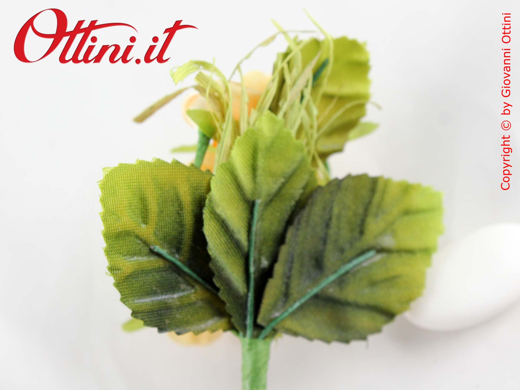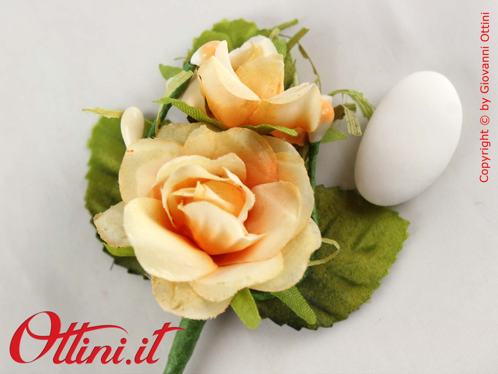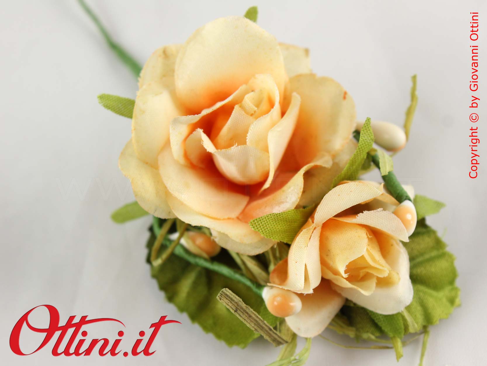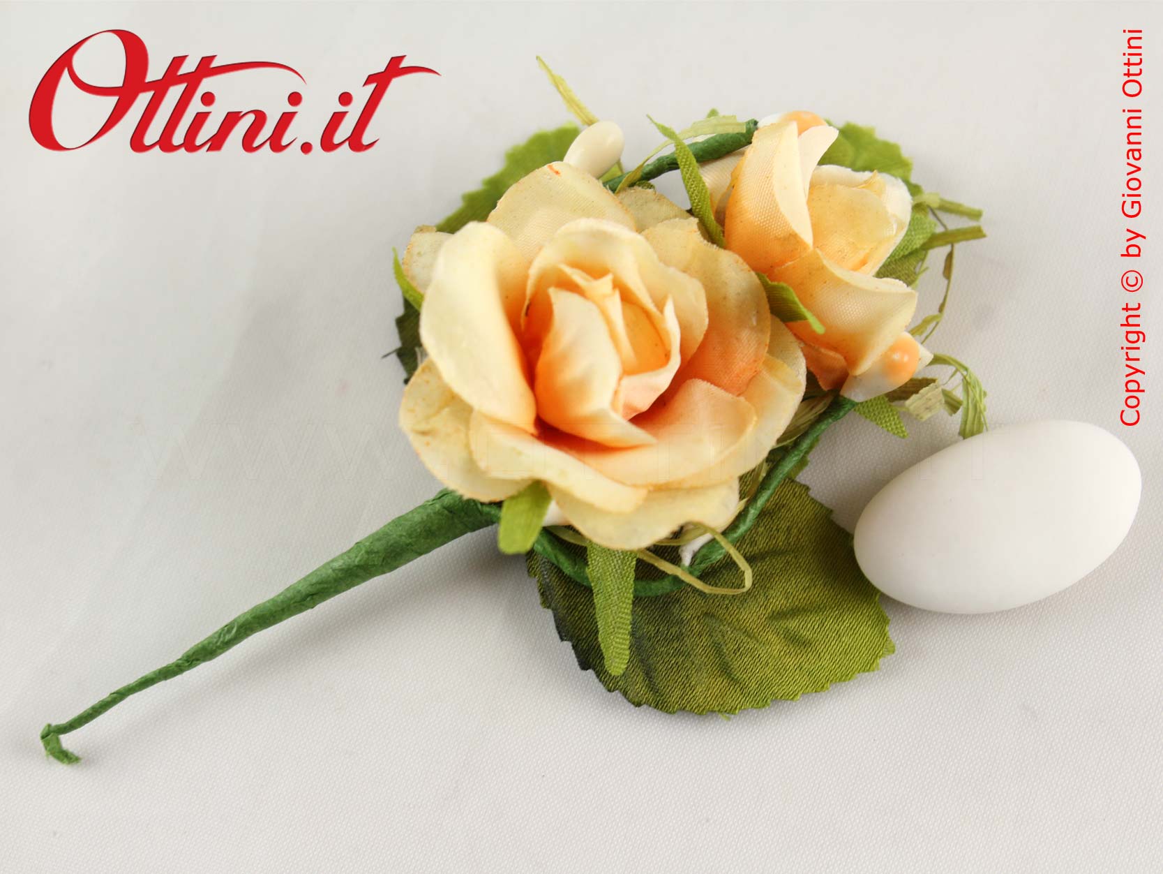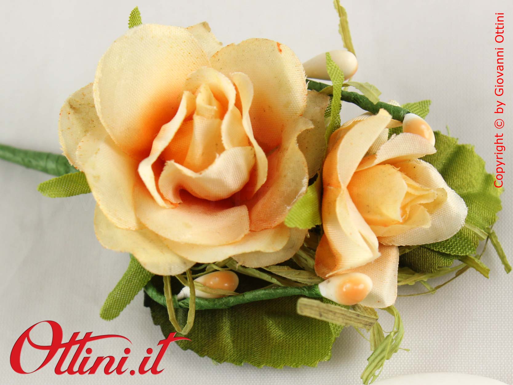 Il Pick Fiore Roselline Salmone è una composizione molto elegante composta da due roselline con foglie sul retro e decori verdi e salmone. E’ un fiore decorativo ideale per la confezione di scatole e sacchettini e con un’ottima resa coreografica. Si abbina a tutti i tipi di nastri dai colori vivaci.