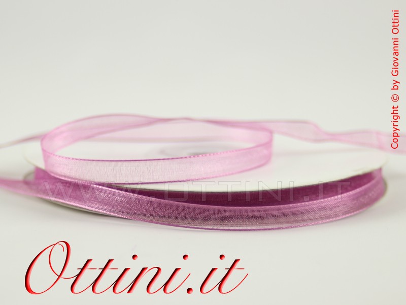 Rotolo da 50 mt di Nastro colore Fucsia in larghezza 6mm reali in Organza Kristall di altissima qualità.