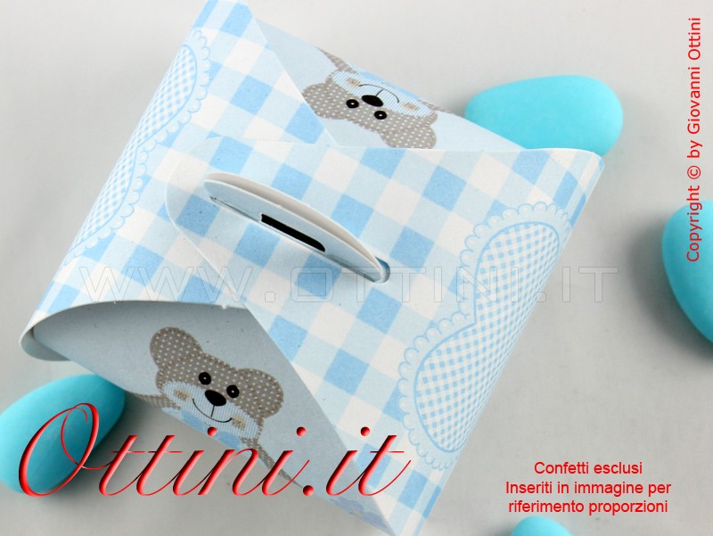 Sobria, elegante, dolcissima nelle tinte pastello e nella grafica delicata. E’ la scatolina a tortina della nuova serie Ted Bear. Esiste in due DUE MISURE. Questa proposta è la più GRANDE. Il montaggio è semplicissimo e non richiede utilizzo di nastri o altri prodotti. Può ospitare qualsiasi tipo di confetto senza problemi di spazio.