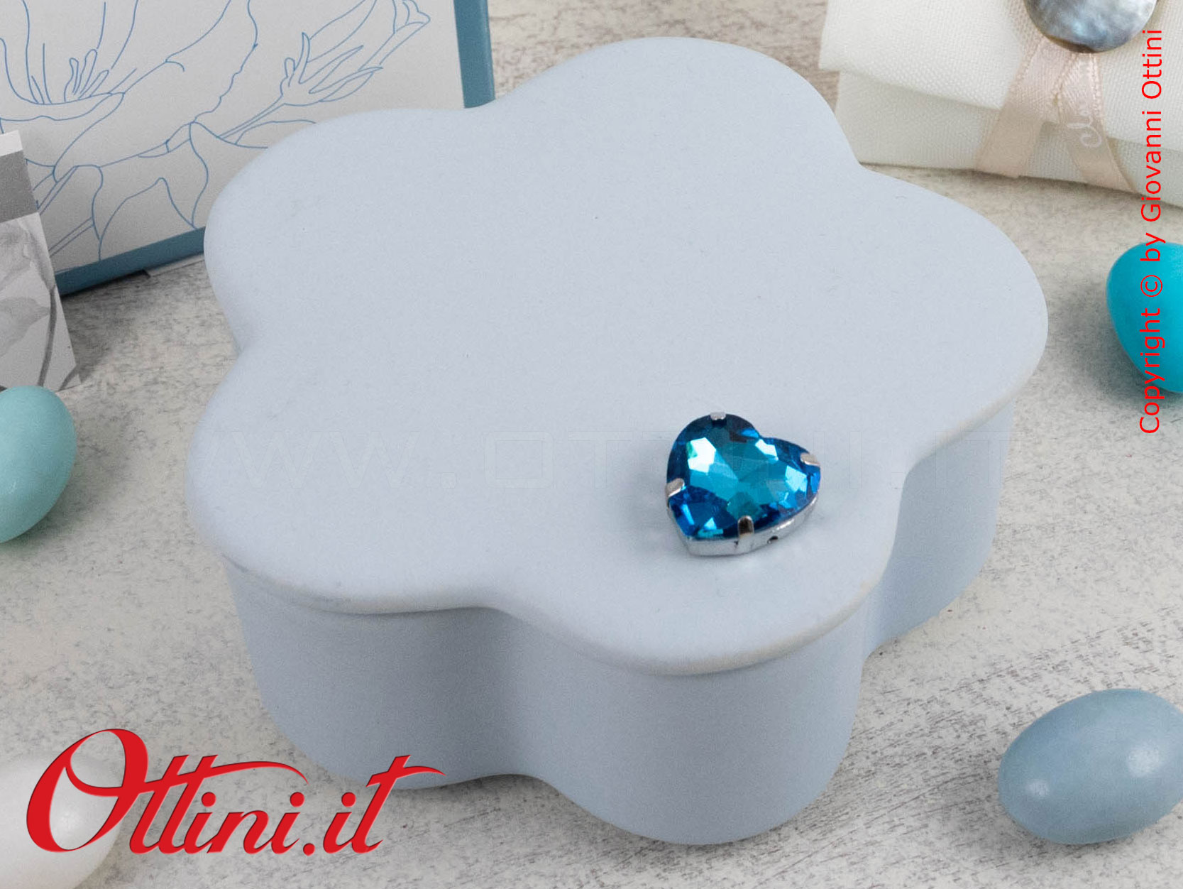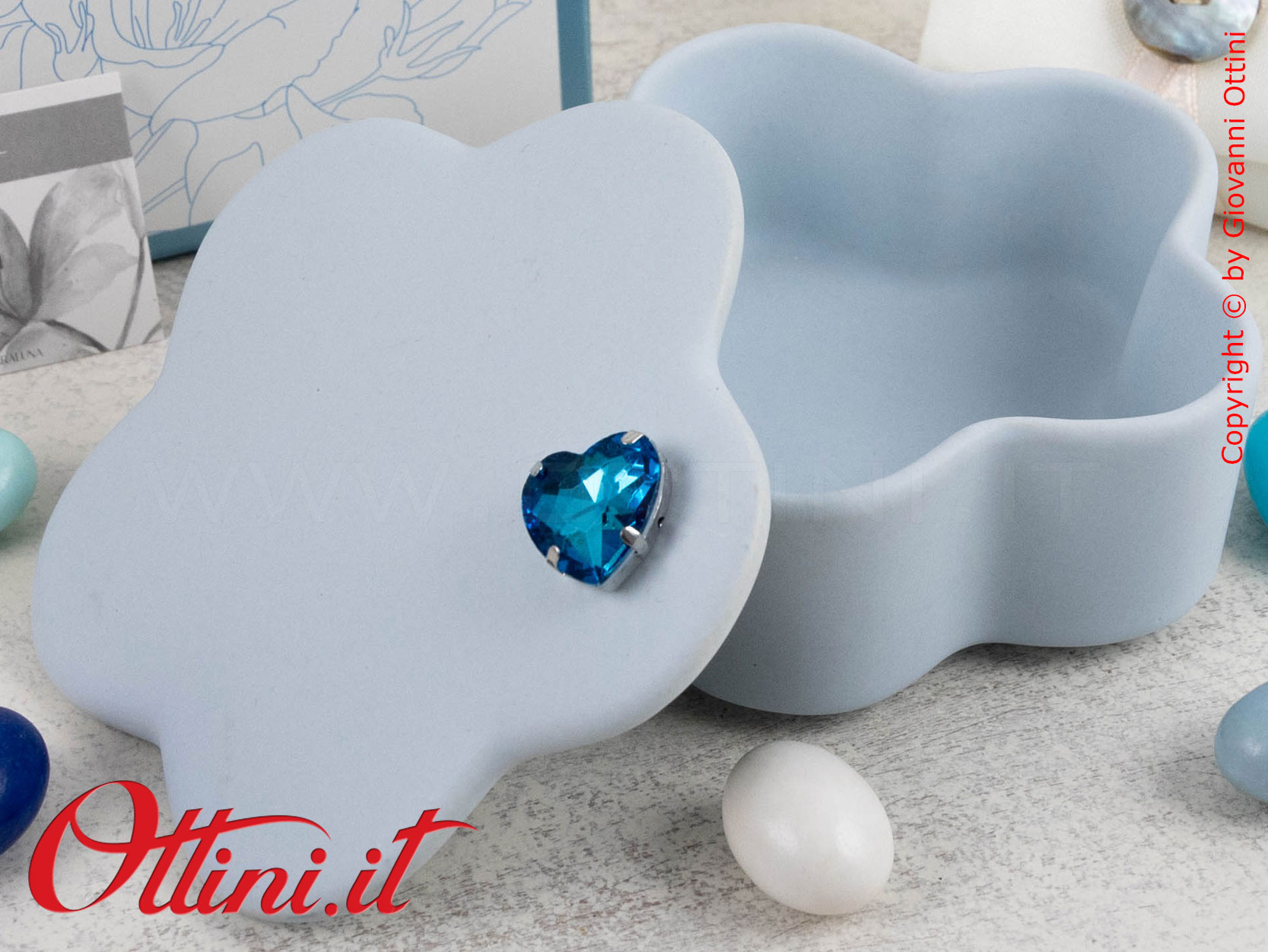 Abbiamo tutti dei piccoli oggetti a cui siamo legati, magari di poco valore sul piano economico, ma preziosi per ciò che rappresentano nei nostri ricordi e nel nostro cuore. Ad essi Claraluna ha riservato un posto speciale, una scatolina in gesso Azzurra, con un bellissimo cuore blu applicato sul coperchio. Le misure sono di cm 6 di diametro e cm 4 di altezza.