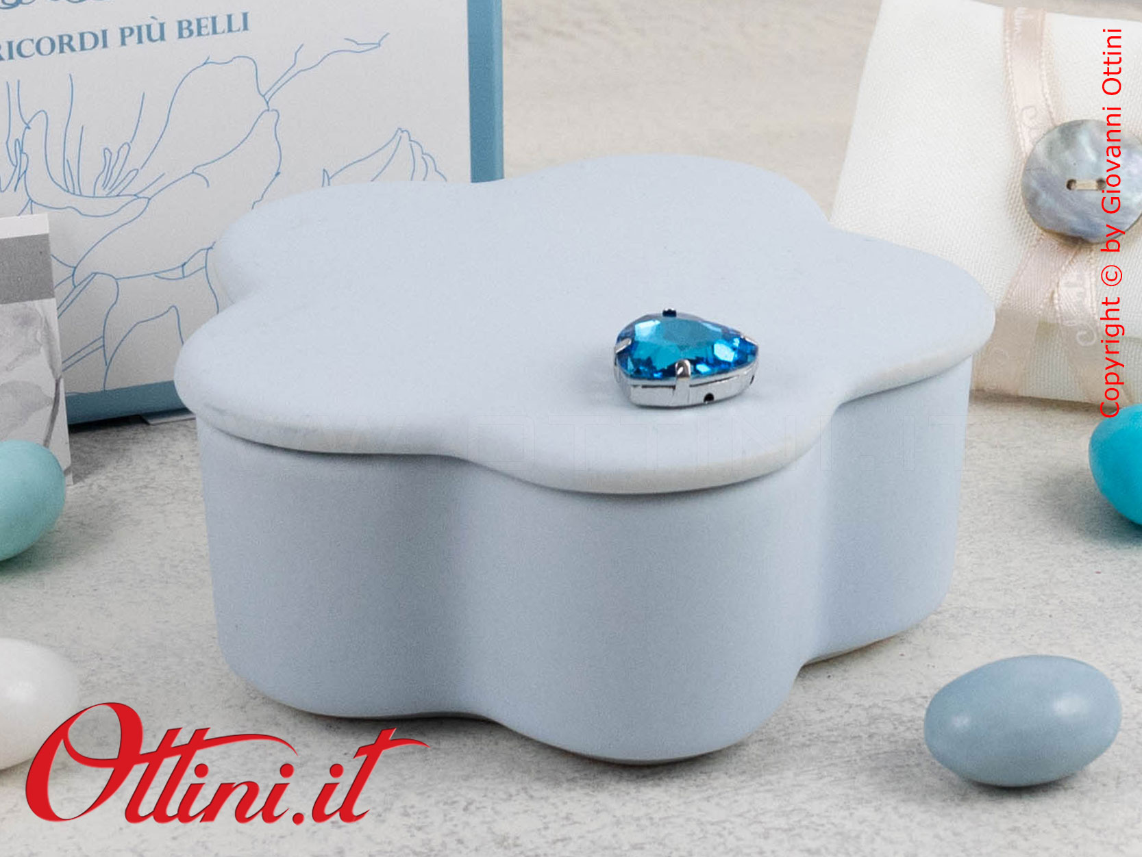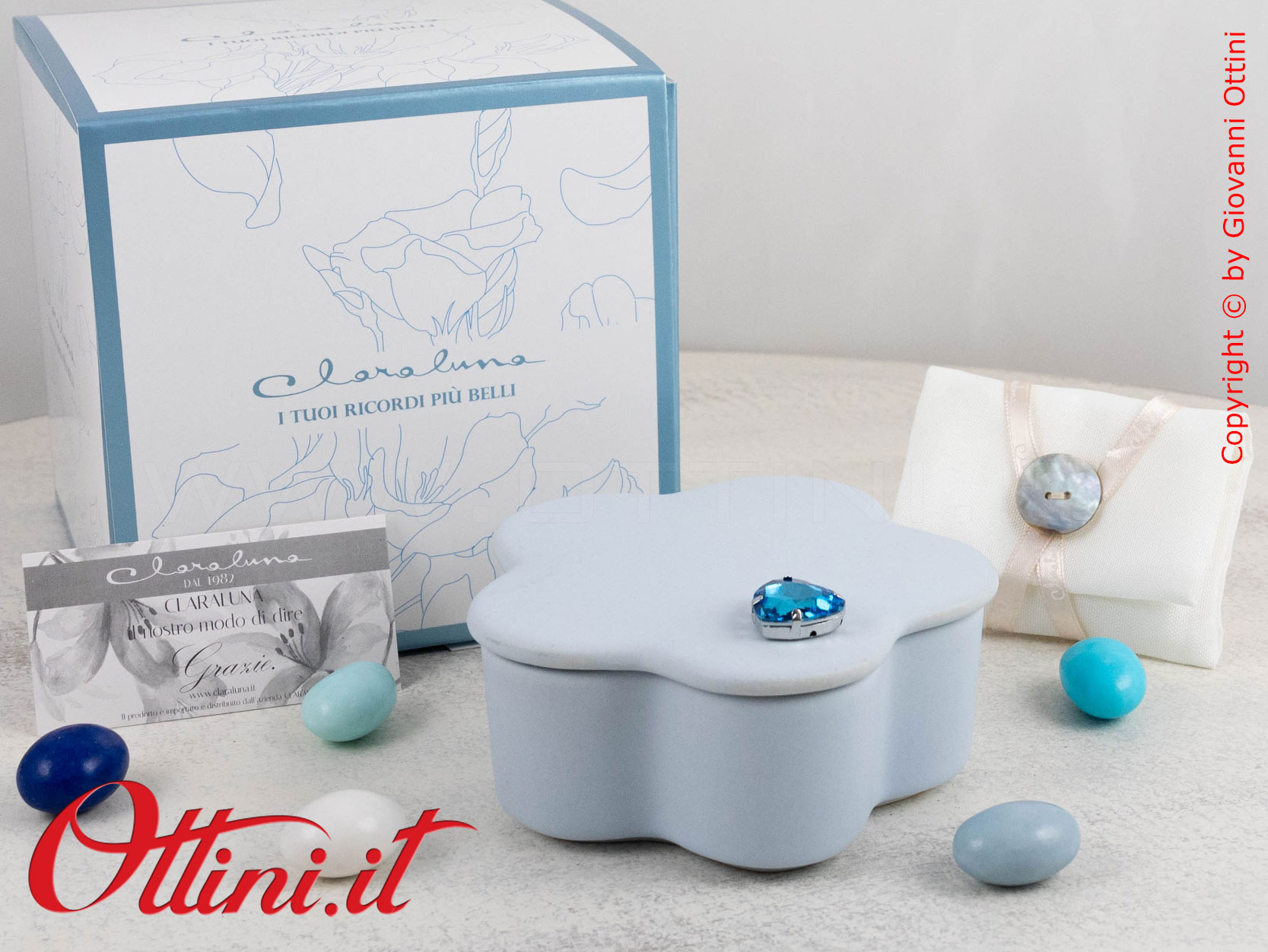 ATTENZIONE: le bomboniere come la Scatolina in Gesso Azzurra con Cuore Blu di Claraluna vengono imballate con estrema cura da parte nostra. Tuttavia è possibile che durante il trasporto, il corriere possa danneggiarle per una infinita serie di ragioni. State tranquilli perché la merce viaggia assicurata e in caso di danno siamo qui per sostituire gratuitamente le rotture, ma dovete solo seguire una sola regola: al ricevimento, prestare attenzione all’incolumità del collo e opponete sempre “RISERVA DI CONTROLLO”, specificando eventualmente il danno (rumore di rottura, cartone schiacciato, ammaccato, ecc). L’autista è OBBLIGATO ad accettare la riserva. Se non opponete la Riserva, e dovessero risultare rotte, diventa problematico far valere l’assicurazione e procedere con la sostituzione.