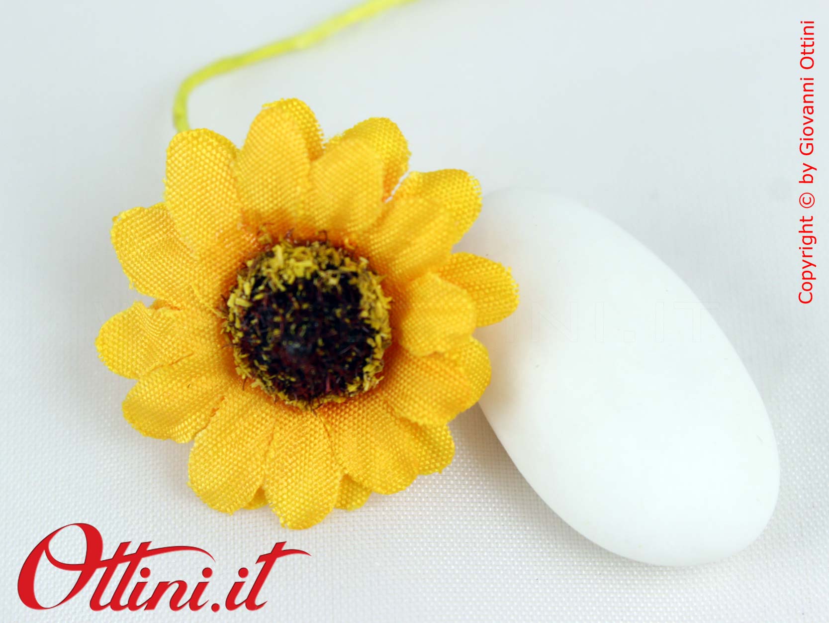 Soleil Girasole Piccolo è un fiore decorativo ideale per la confezione di scatole, sacchettini e tutti i prodotti a cui si vuole dare una spiccata impronta estetica solare/estiva. Si abbina a tutti i tipi di nastri dai colori vivaci. Il vantaggio della dimensione più piccola rispetto a quello della stessa serie più grande, è l’adattabilità anche alle confezioni più piccole, come le scatoline plexiglass o a quelle portaconfetti in cartoncino.