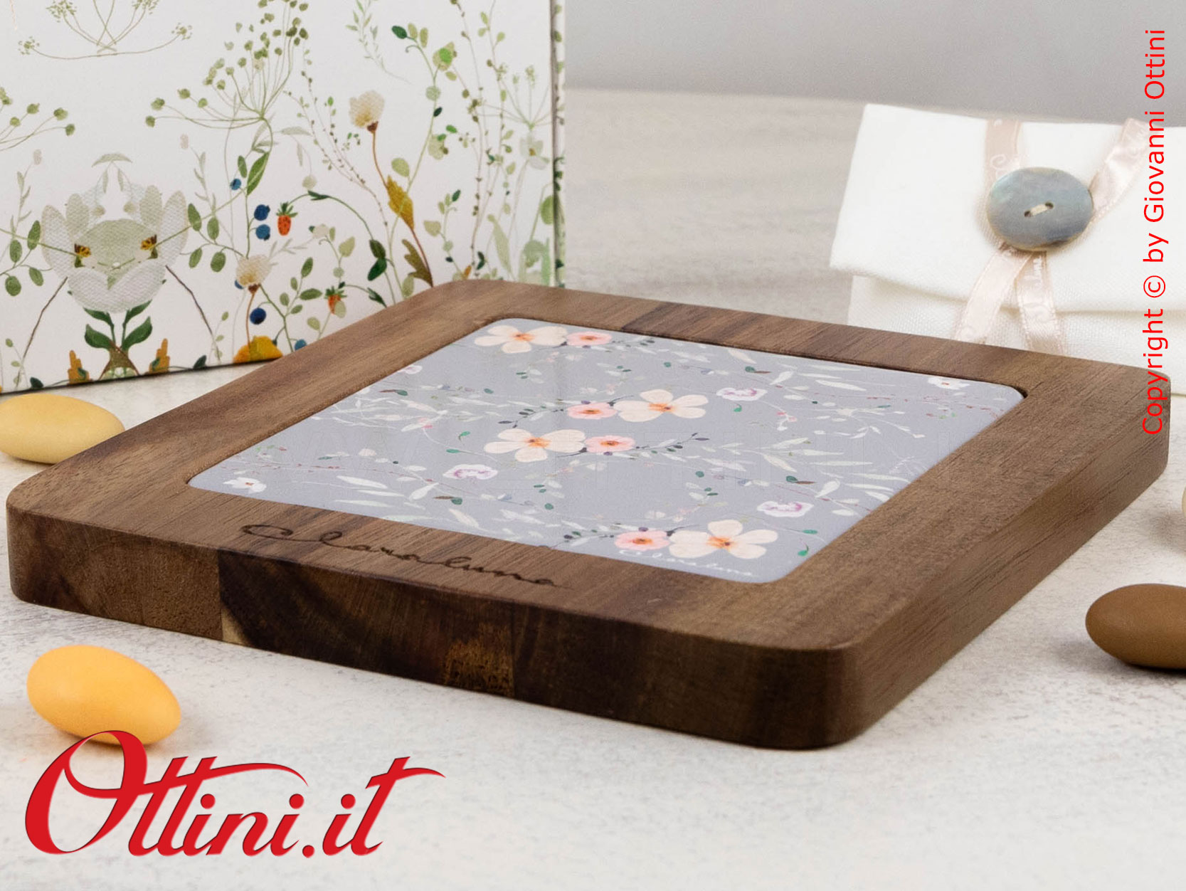 Classe e qualità anche in cucina con il sottopentola di Claraluna in legno massello tinta noce e piastrella di ceramica con decoro floreale verde. I prodotti destinati all’uso quotidiano sono i più richiesti, prodotti funzionali e belli da vedere. Claraluna investe risorse e ricerca per proporre la qualità in prodotti che vanno oltre al significato di un semplice regalo, che devono resistere nel tempo ed essere valorizzati da chi li riceve.