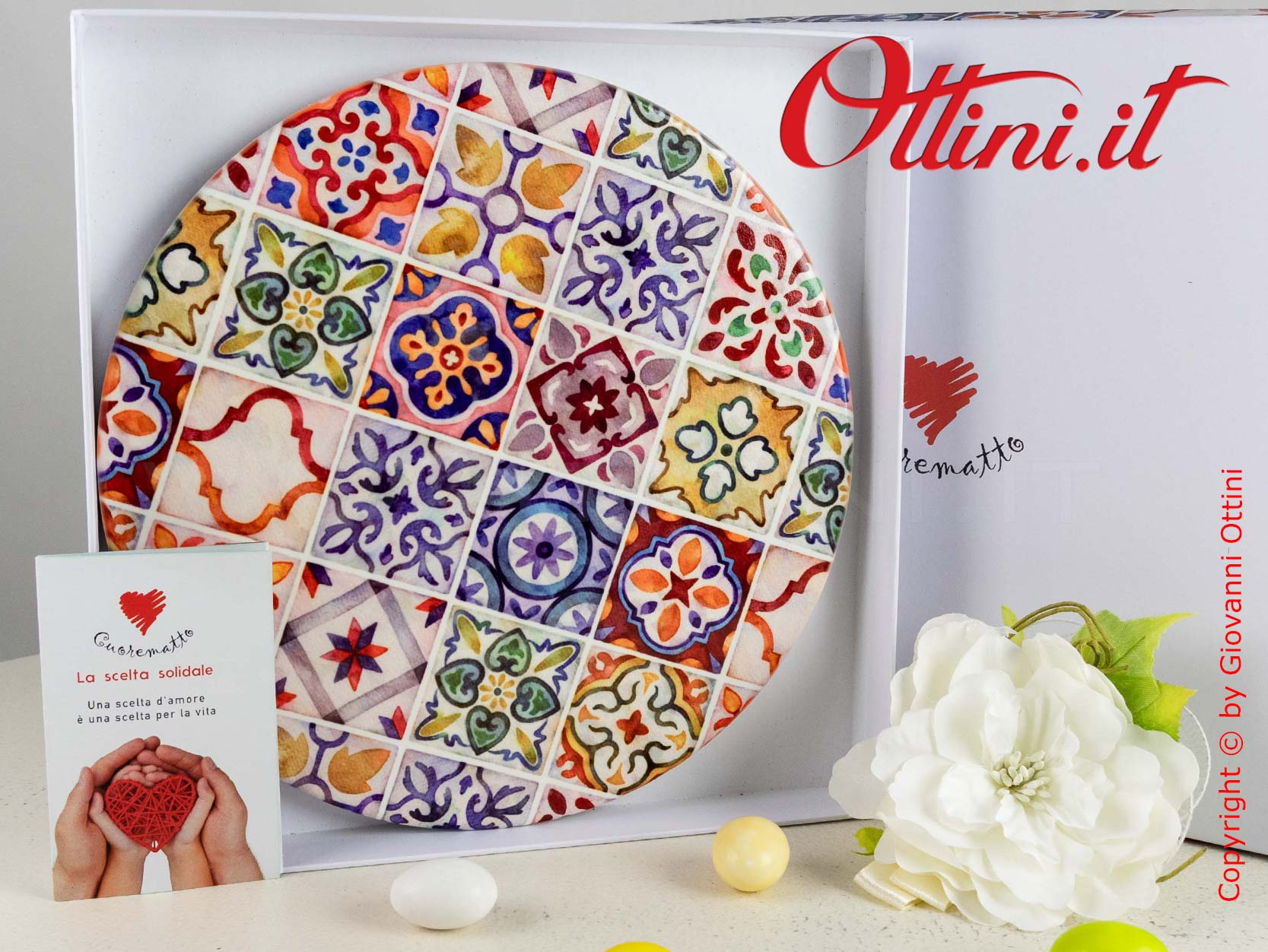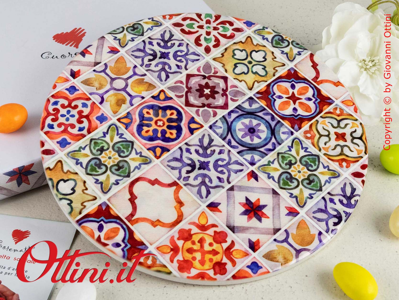 Colori solari e vivaci per questo sottopentola della serie Sicily di Cuorematto, che riprende il design tipico delle splendide maioliche siciliane. Realizzato in ceramica smaltata con finitura lucida, è facile da pulire. Sul retro è stato applicato uno strato in sughero che garantisce stabilità e un buon isolamento termico. I prodotti destinati alla cucina sono in forte crescita, spesso all’apice delle richieste per un “regalo utile”. Le misure sono di 20 cm di diametro per 1 cm di spessore.