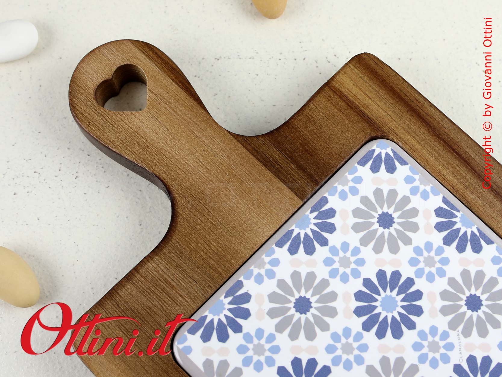Elegantissimo tagliere realizzato in acacia con Fiori Blu/Tortora con coltellino. Il legno è in puro massello con finitura satinata, splendido davvero, e al centro è applicata una piastrella di maiolica con motivo floreale di tendenza nei colori blu e tortora. A corredo troviamo il coltellino per formaggi che completa il tutto. Le bomboniere utili per la cucina sono la soluzione emergente in questi ultimi anni e sono in continua crescita le proposte che si orientano a questo mercato.