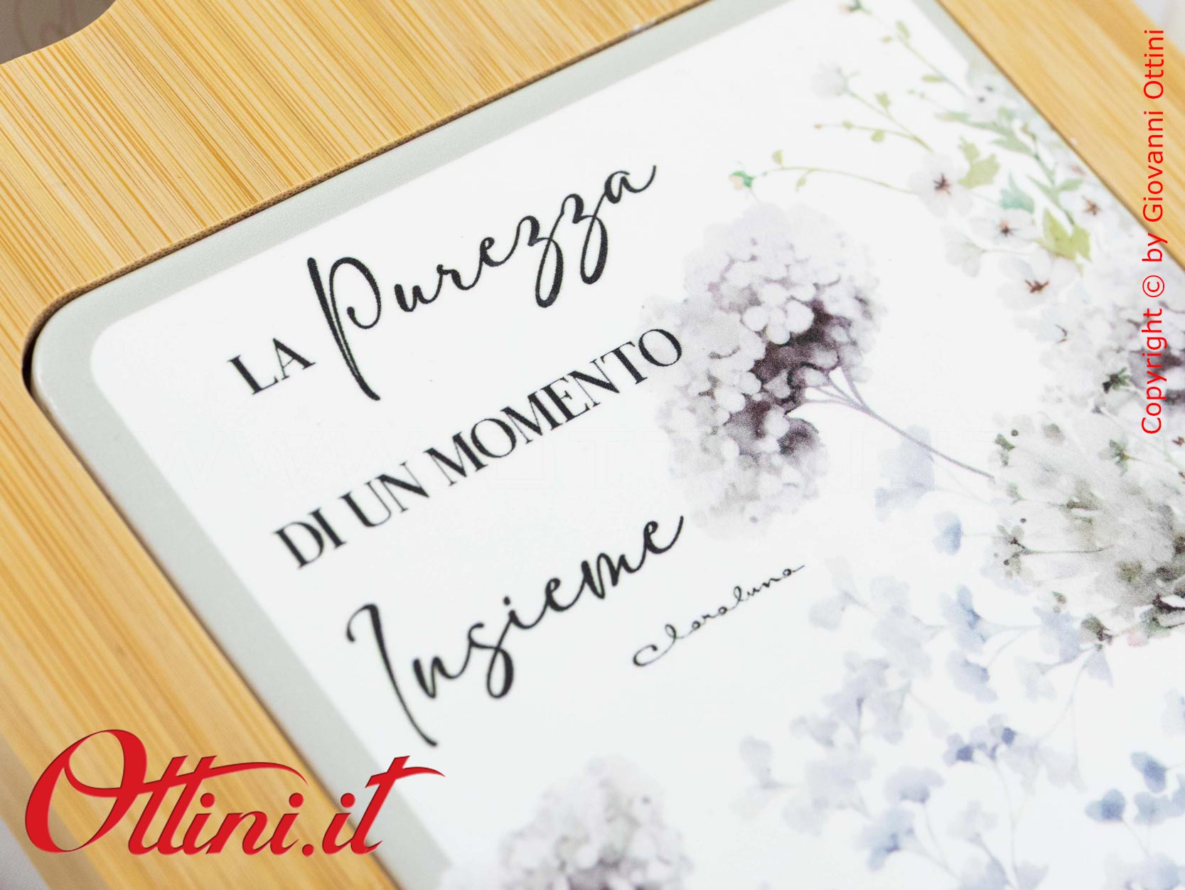 Su ogni tagliere è stampata che la frase emozionale “La Purezza di un Momento insieme”…