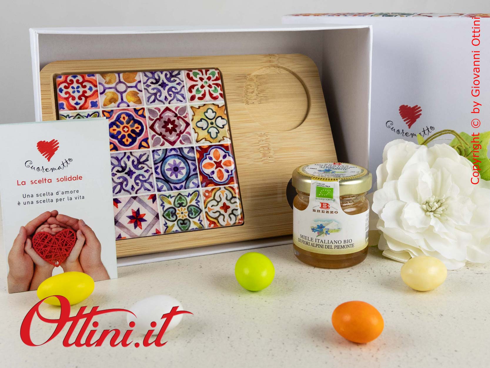 Il Tagliere Sicily con Miele di Cuorematto è abbinato al progetto di solidarietà CUOREMATTO che sosterrà concretamente le opere dei Frati dell’Antoniano di Bologna ed è corredata del relativo certificato che ne garantisce l’originalità.
