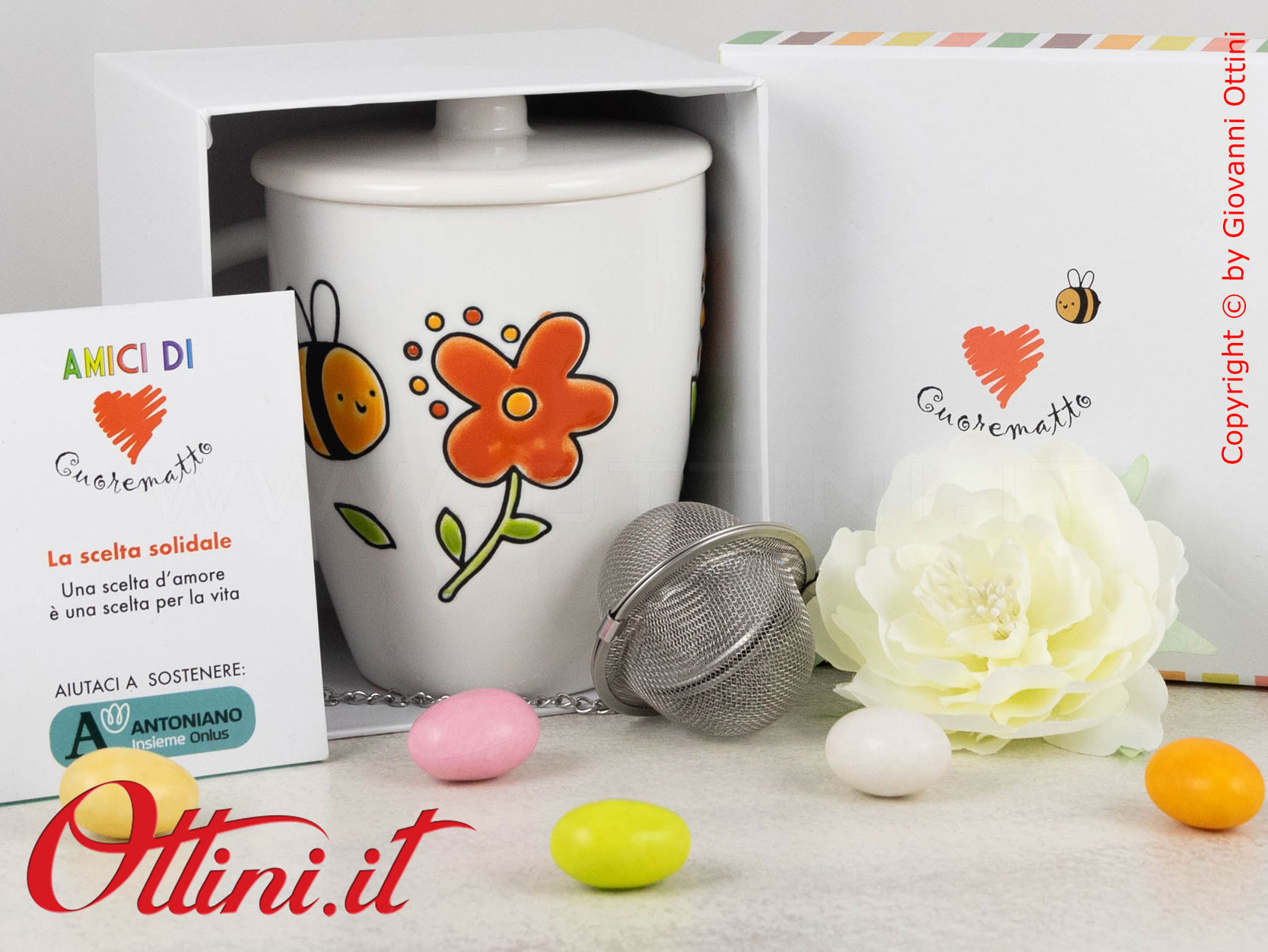 I momenti di relax sono un privilegio e vanno valorizzati anche nelle piccole cose. Cuorematto ci propone questa tisaniera in porcellana smaltata e dipinta a mano con vivaci disegni colorati a rilievo, completa di coperchio e filtro in metallo, della collezione Amici di Cuorematto. Le bomboniere sono diventate regali utili e sono i più richiesti per qualsiasi tipo di evento. Regalare questi oggetti significa regalare un’esperienza, l’augurio di godere di momenti di serenità e meritato relax.