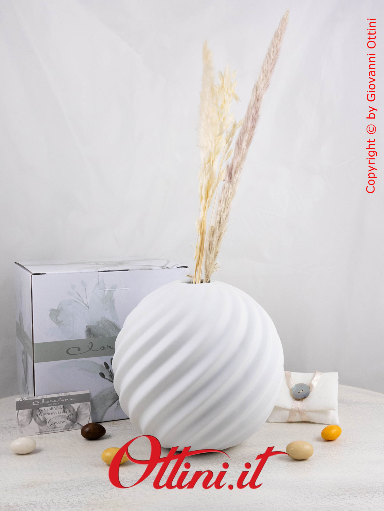 Con un ordinativo minimo di 50 pz del Vaso Tondo Onde Bianco (o di bomboniere miste Claraluna abbinate alla promozione), potrete accedere alla campagna promozionale che vi permette di avere le PARTECIPAZIONI di Claraluna IN OMAGGIO, comprensive di servizio stampa!!! Potrete scegliere tra ben 6 modelli bellissimi! Per le condizioni e le modalità FATE CLICK QUI.